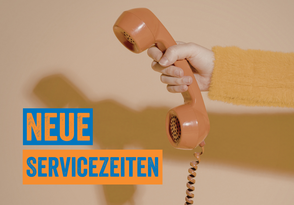 Wir stehen euch weiterhin mit Rat und Tat zur Seite. Bitte plant eure Anrufe entsprechend unserer neuen Zeiten ein oder schreibt einfach eine E-Mail.